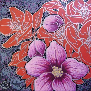 oil, acrylic and gloss paint on canvas; 15,75x 15,75 in